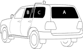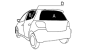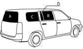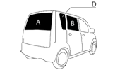 後のドアが上または横方向に開いてフィルム施工がし易いガラス